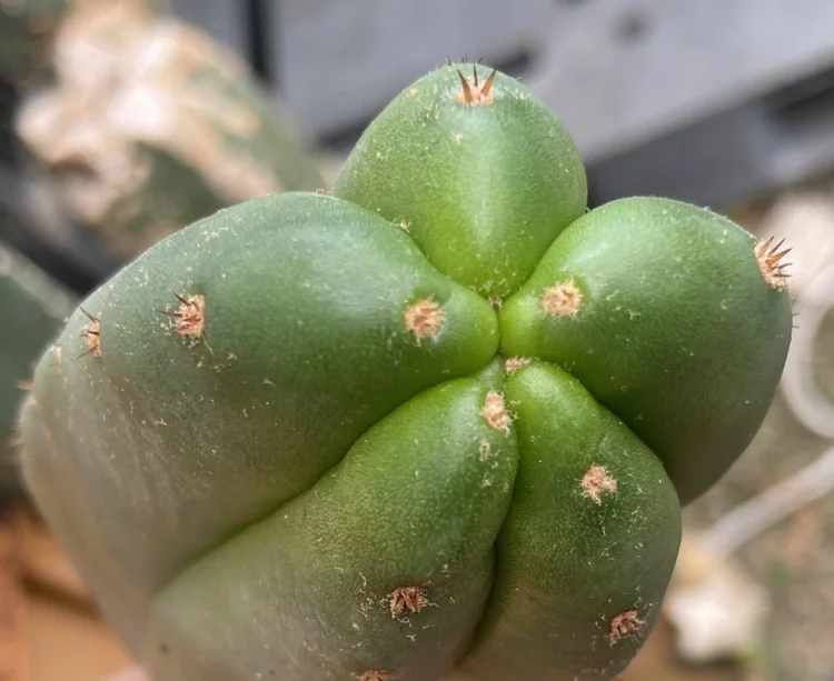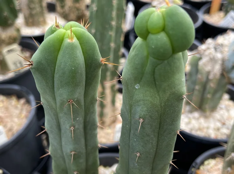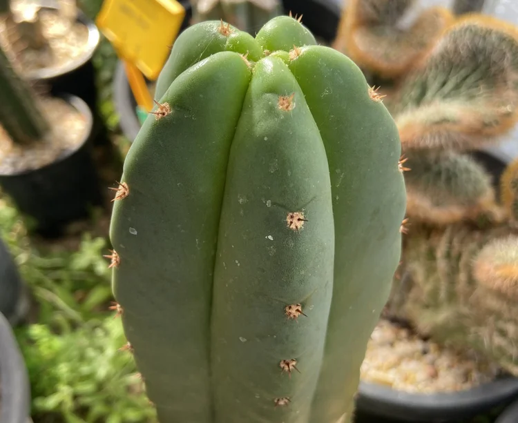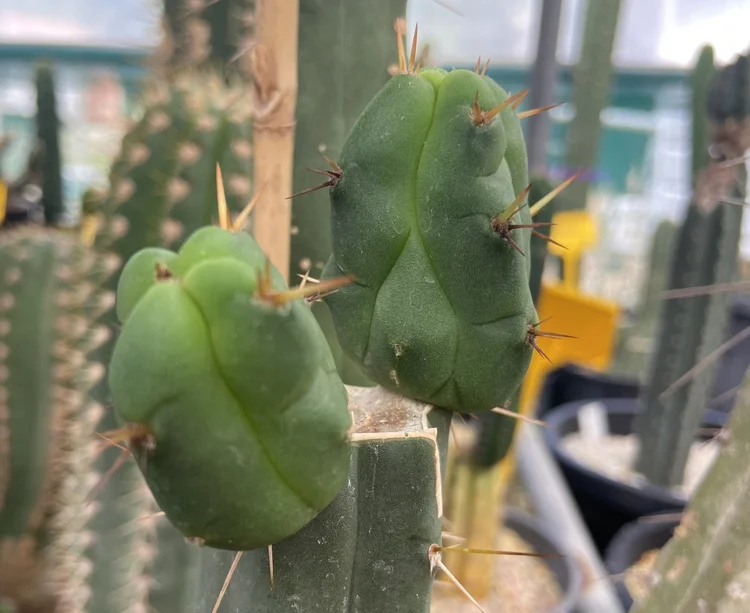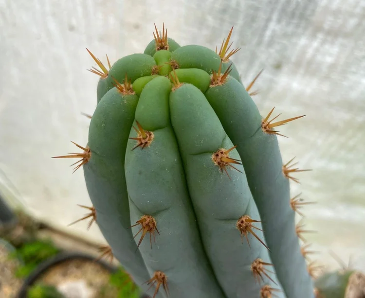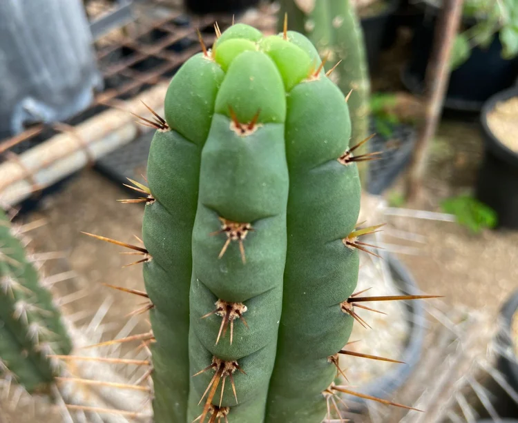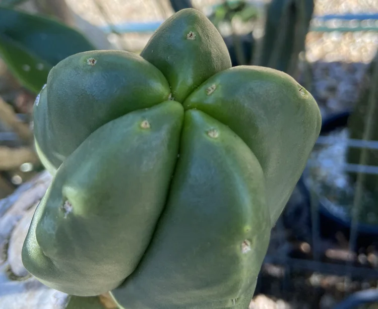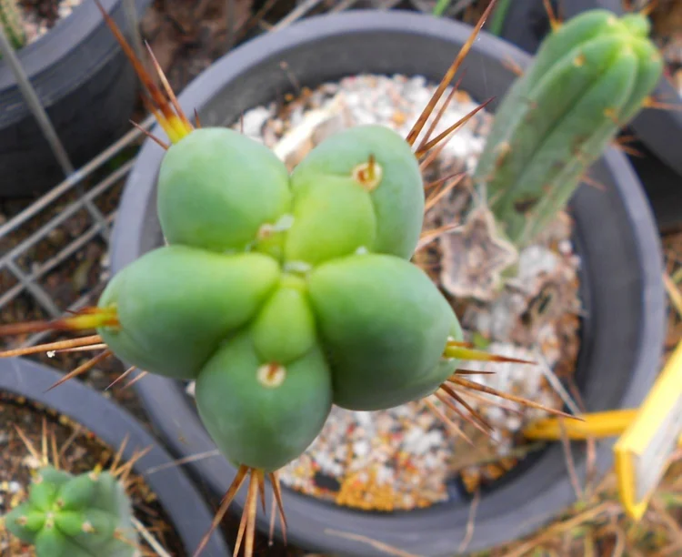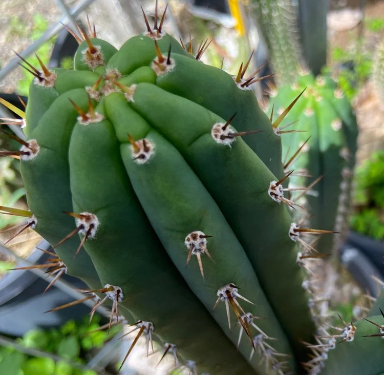 Originating from “shaman Roberto”, a Mullumbimby local who apprenticed with a Venezuelan shaman and imported their local cactus. Small spines, dark green, fat.