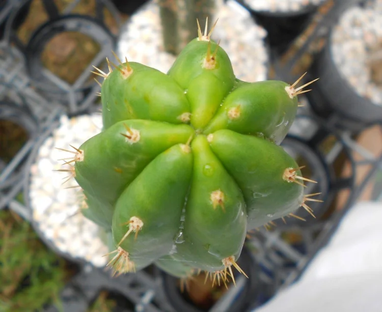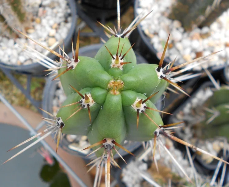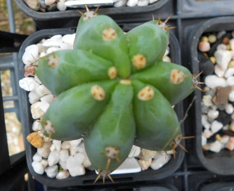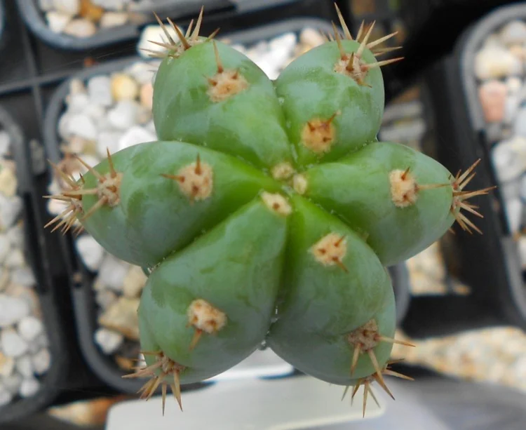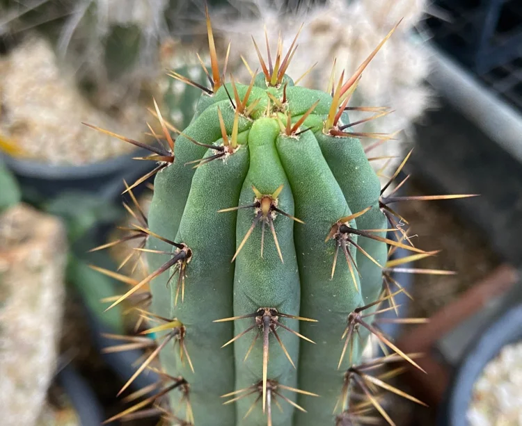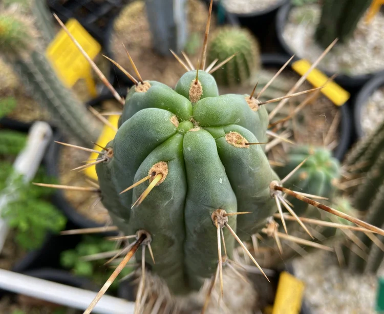 Originally sourced from the defunct Magickal Botanicals. Rib shfting, glaucous to green body and long brown spines turning white with age.