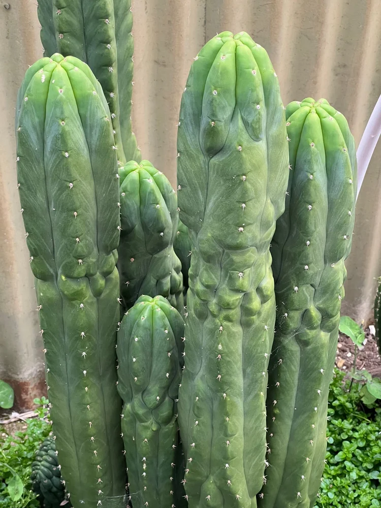 Trichocereus sp. “TPM” x Trichocereus pachanoi. Seed grown plant from Sacred Succulents seed. Produces mutant offspring as a seed parent.