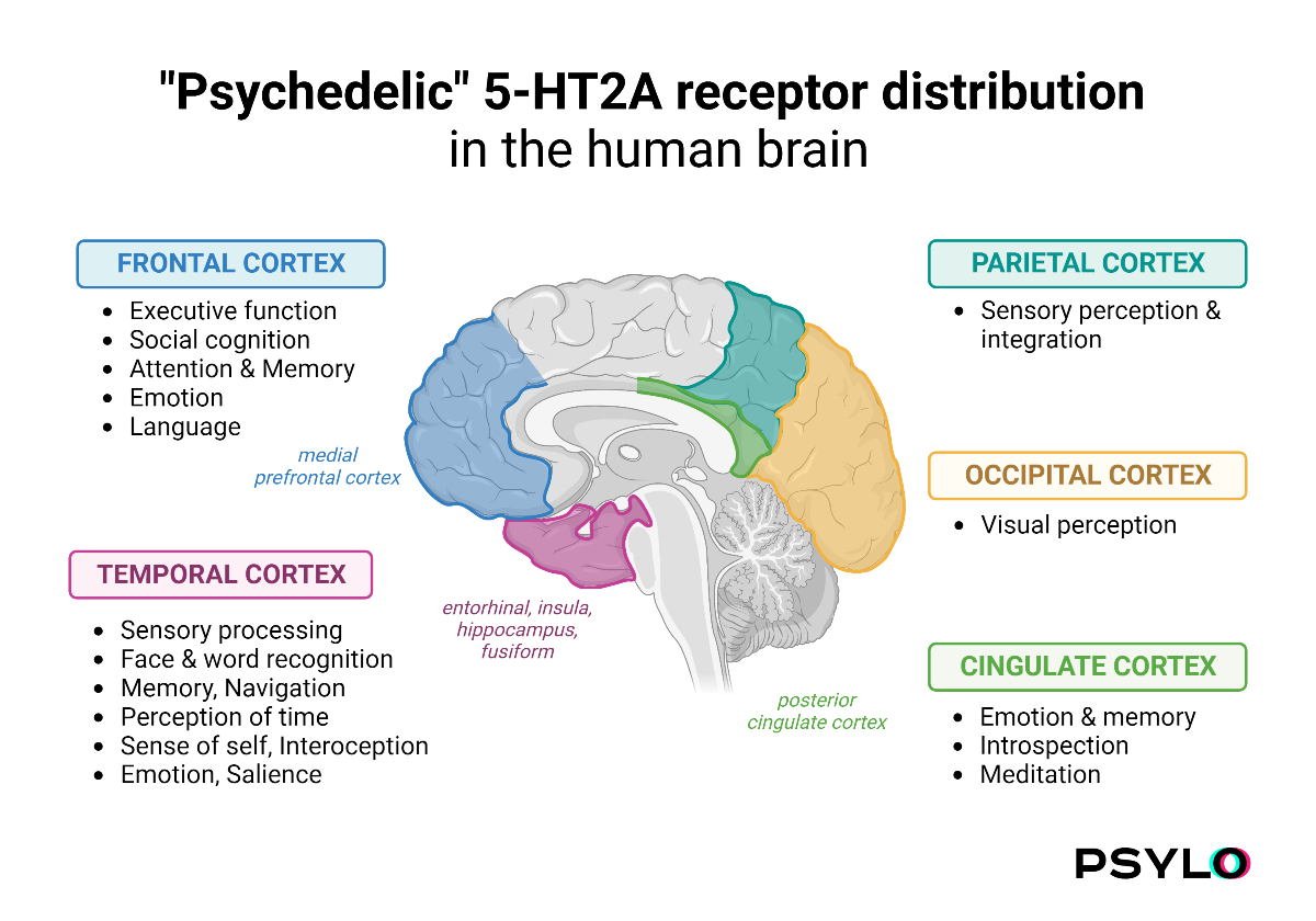 “Psychedelic” 5HT2A receptor distribution in the human brain. Image by Psylo.