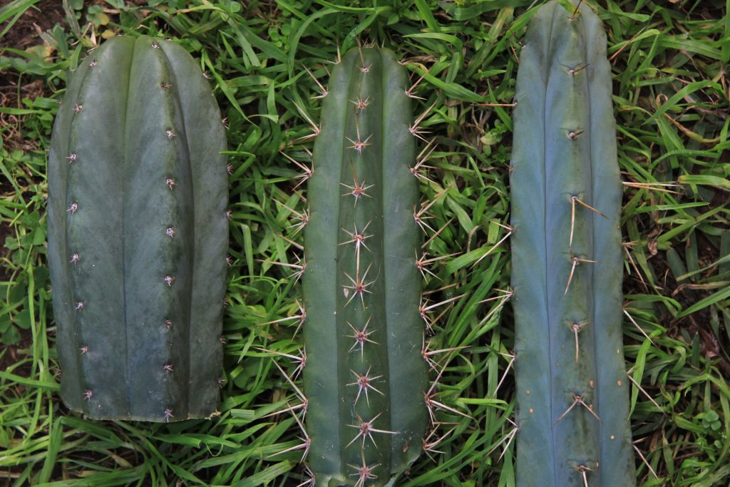 San Pedro species, from left to right; Trichocereus pachanoi, Trichocereus peruvianus, Trichocereus bridgesii. Photo by Liam Engel.