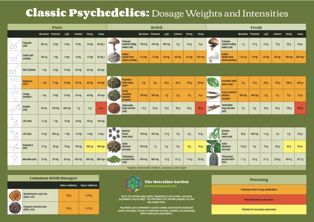 - Combining with other psychedelics, such as psilocybin mushrooms